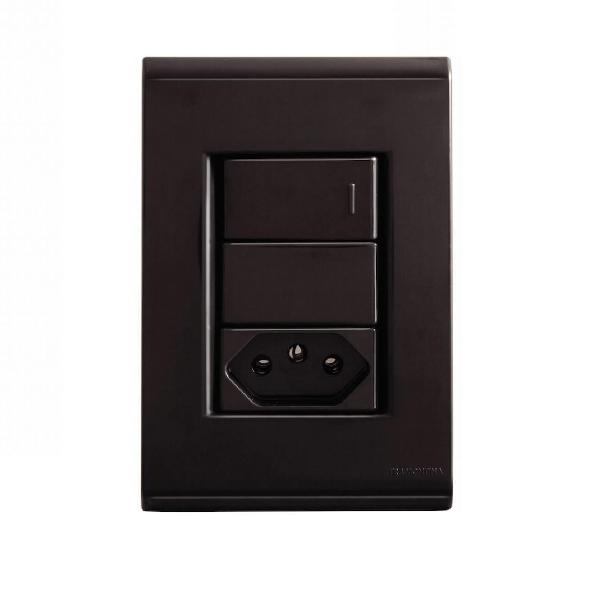 Conjunto 1 Interruptor Simples E 1 Tomada 10a Grafite 57173/064 Tramontina Liz