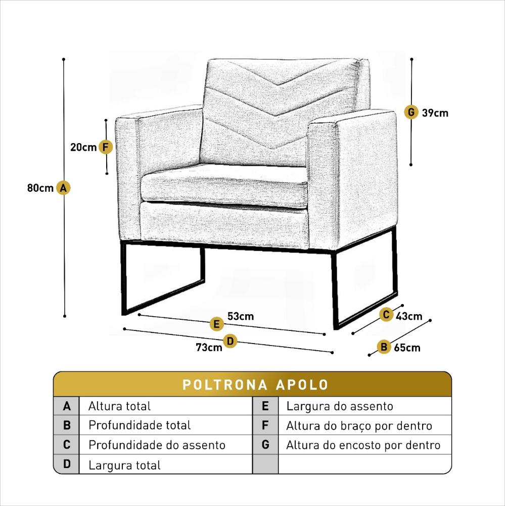 Conjunto - 2 Poltronas Apolouma Linda Poltrona Decorativa, Perfeita Para Sua Casa Ou Seu Ambiente De Trabalho. Com Um Toque De Modernidade, Foi Produzida Especialmente Para Deixar Qualquer Espaço Mais Leve, Decorado E Com Um Toque A Mais De Sofisticação.a Castellar Móbile É Uma Empresa Que Nasceu Com O Intuito De Oferecer Comodidade E Qualidade. Nos Dedicamos A Suprir O Desejo De Nossos Clientes, Com Clareza Nas Informações E Agilidade Nos Processos. A Beleza E Sofisticação De Nossos Produtos Vem Como Gratidão Por Essa Parceria.dimensões E Peso: - Altura: 81 Cm - Largura: 72 Cm - Profundidade: 65 Cm - Peso: 19,5 Kgcaracterísticas: - Produção Exclusiva - Produto Feito Com Espuma De Qualidade D26 Soft - Suporta Até 140 Kg - Base Metálica Disponível Nas Cores Preto E Bronze-metal Fundido Antiferrugemtecidos E Cores Disponíveis: - Esse Produto Está Disponível Em Diversos Tecidos E Cores. Escolha O Seu Preferido E Decore Seu Ambiente. Instruções De Limpeza E Cuidado: - Utilizar Um Pano Levemente Umedecido, Seguido De Pano Seco. - Evitar Exposição Ao Sol, Para Que Não Sofra Alterações Na Cor Do Tecido. - Não Limpar Com Escovas Ou Semelhantes.