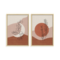 Conjunto 2 Quadros Com Moldura Lua Com Flor Abstrato Madeira Clara - Grande -