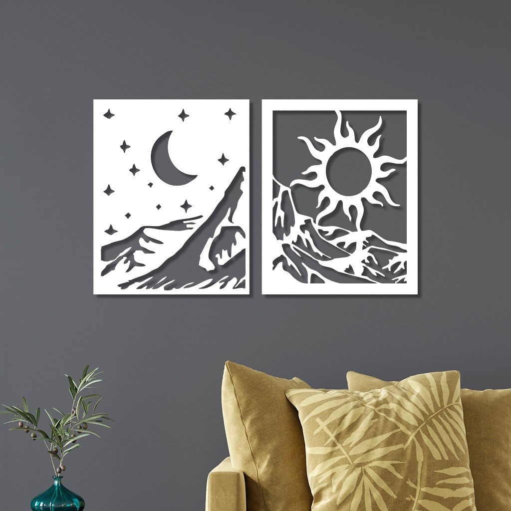 Conjunto 2 Quadros Em Mdf Lua E Sol