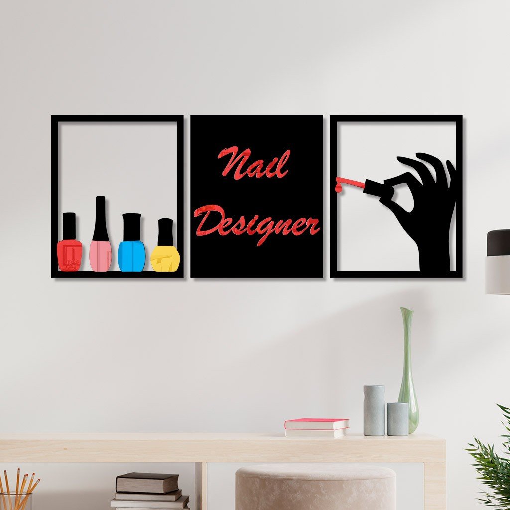 Conjunto 3 Quadro Vazado Nail Designer 1 Com Acrílico Vermelho - 30cm X 37cm -