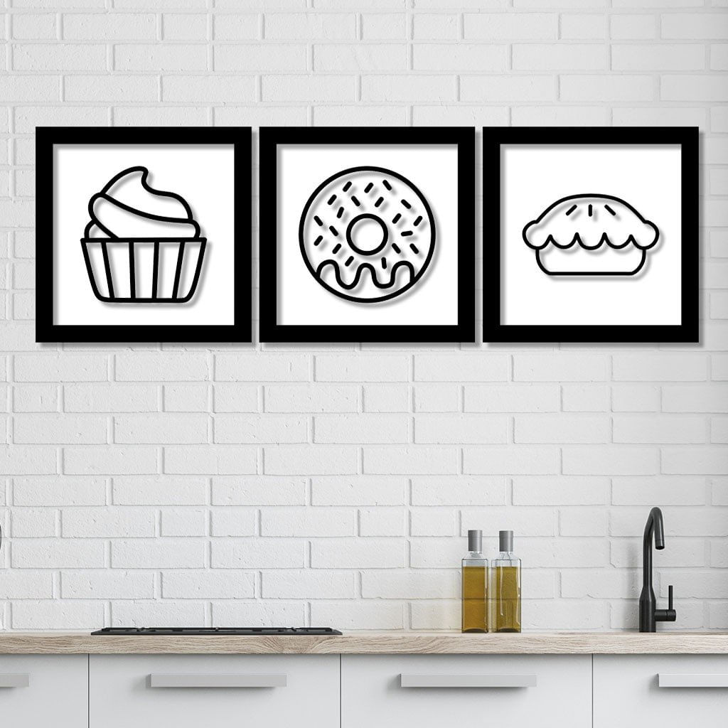 Conjunto 3 Quadros em MDF Doces com Moldura Preto - 30cm x 30cm - ...Características Gerais do Produto:.. Dimensões: 30cm x 30cm. Cor da peça: Preto / Branco. Espessura: 6mm. Material: MDF Laminado. Acompanha: Fita dupla face. Moldura: Com Moldura...Garantia:.. 7 dias