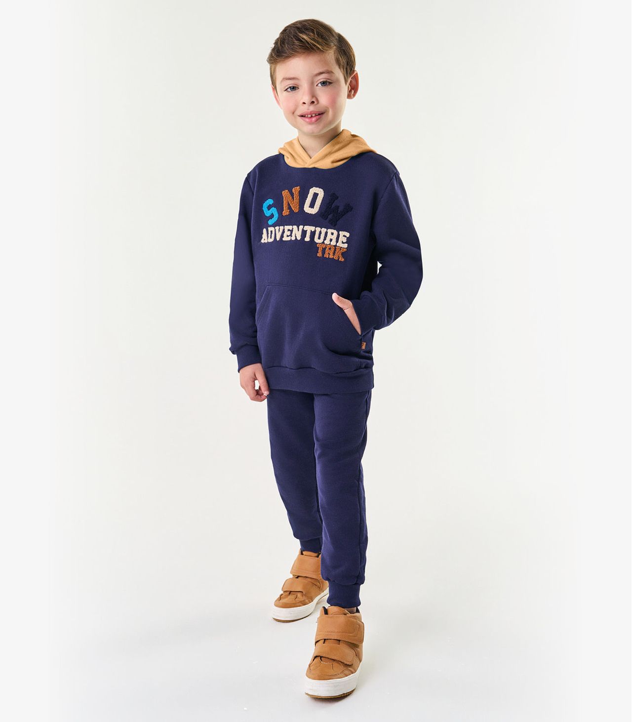O Conjunto Blusão Com Capuz E Calça Trick Nick É A Expressão Máxima De Conforto E Estilo Para Os Pequenos. Confeccionado Em Moletom, O Blusão Conta Com Um Capuz Forrado Em Meia Malha, Proporcionando Um Toque Suave E Aquecimento Extra. O Bolso Canguru Acrescenta Praticidade E Um Detalhe Charmoso À Peça. A Calça, Com Cós Colocado E Elástico, Oferece Ajuste Perfeito, Enquanto O Cadarço Funcional E O Bolso Embutido Completam O Visual Com Funcionalidade E Modernidade.