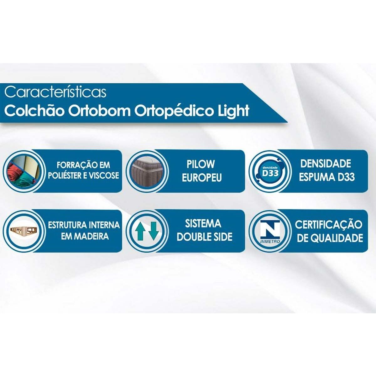 Conjunto Box - Colchão Ortobom Ortopédico Light OrtoPillow + Cama Box Universal Nobuck Café - Solteiro 0,88x1,88Abaixo segue os produtos do KIT: Produto: Colchão Ortobom Ortopédico Light OrtoPillow INMETRODimensões(Cm): Comprimento(Profundidade): 188,00 x Largura: 88,00 x Altura: 24,00 Fabricante: Ortobom BENEFÍCIOS EXTERNOS DO COLCHÃO Tipo de Pillow - Pillow Top Europeu Tipo de Bordado do Tecido de Revestimento - Bordado Contínuo Tipo Tecido de Forração Revestimento - Viscose - Poliéster Tipo de Tecido de Revestimento da Faixa Lateral - Em Poliéster Tecido com Tratamento - AntiÁcaro e AntiFungo Modo de Utilização - Sistema Double Side CARACTERÍSTICAS INTERNA DO COLCHÃO Camadas Interna do Estofamento de Espuma - D33 - Espuma de Qualidade Tipo de Estrutura Ortopédico - Caixa Wood (Madeira) Outras Características Internas - Poliol Vegetal CARACTERÍSTICAS GERAIS DO COLCHÃO Suporte de Peso - até 120 Kg Tipo de Conforto - Extra Firme BENEFÍCIOS GERAIS DO COLCHÃO Certificados de Qualidade - Certificado INMETRO Vantagens Extras do o colchão ortopédico - Ecológicamente C o rreto Nossa Avaliação - Classificação de Qualidade Excelente Tempo de Garantia - 1 ano Produto: Cama Box Base Ortobom Universal Nobuck Rosolare Café 020Dimensões(Cm): Comprimento(Profundidade): 188,00 x Largura: 88,00 x Altura: 32,00 Fabricante: Ortobom DIVERSOS BENEFÍCIOS DA CAMA BOX Sobre a Cama Box Base - Informações da Cama Box Base - Vantagens BENEFÍCIOS EXTERNO DA CAMA BOX Forração de Revestimento da Cama Box - Acabamento em Nobuck Altura da Cama Box com os Pés - 32 cm de altura Detalhes Gerais da Cama Box - Pés Fixos PVC Cromado CARACTERÍSTICAS INTERNAS DA CAMA BOX Características Internas Cama Box - Estrutura Interna Madeira CARACTERÍSTICAS GERAIS DA CAMA BOX Suporte de Peso da Cama Box - até 150 kg BENEFÍCIOS GERAIS DA CAMA BOX Certificações de Qualidade da Cama Box - Certificação de Qualidade Aprovada Nossa Avaliação da Cama Box - Classificação de Qualidade Muito Boa Tempo de Garantia da Cama Box - 3 Meses Não nos responsabilizamos pela montagem/instalação dos produtos. Todas as informações divulgadas são de responsabilidade exclusiva do fabricante/fornecedor. Imagens Meramente Ilustrativas. Verifique com os fabricantes do produto e de seus componentes eventuais limitações à utilização de todos os recursos e funcionalidades.