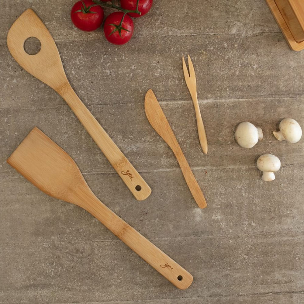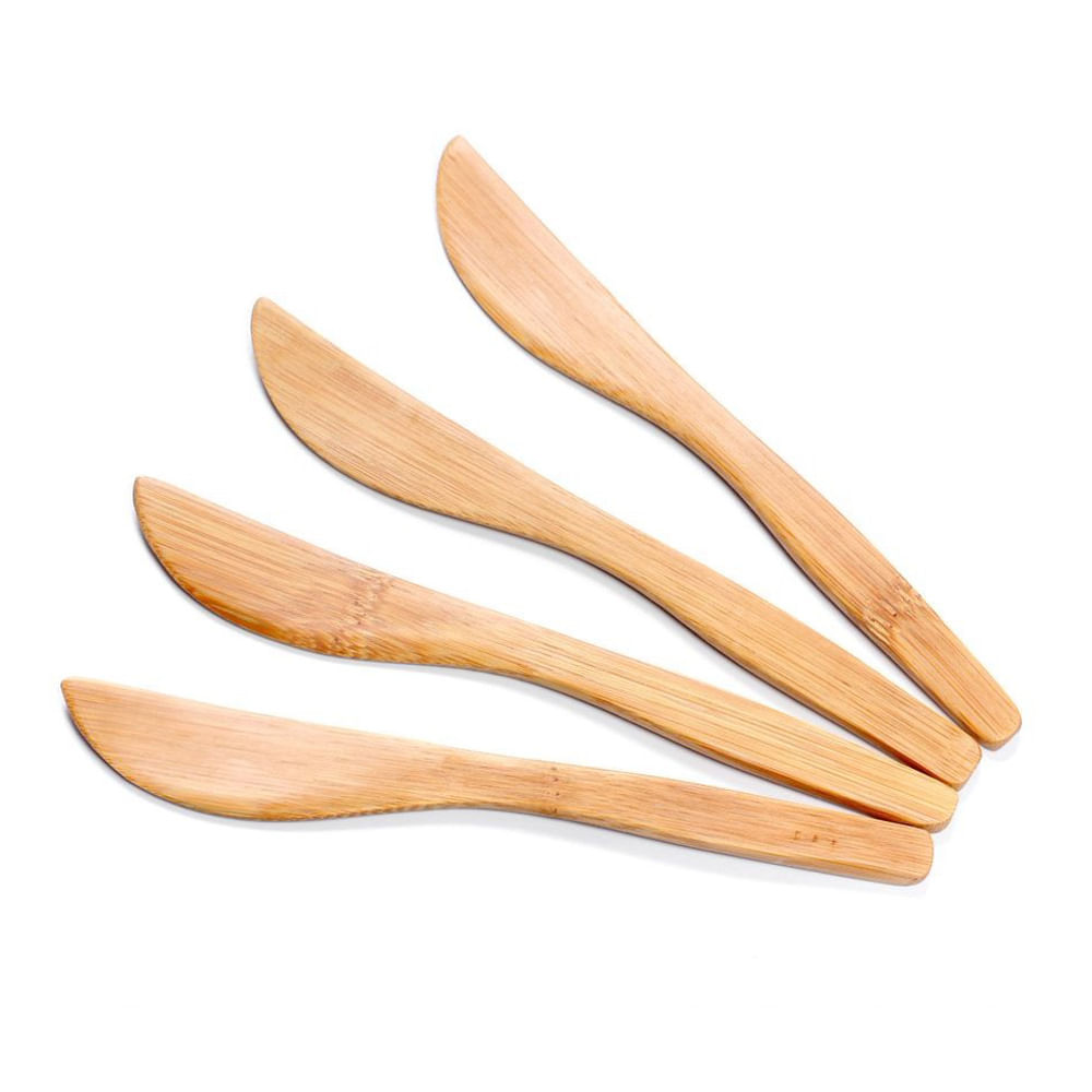 Kit com quatro espátulas para manteiga em bambu Yoi. Os produtos feitos em bambu possuem agentes bactericidas, que previnem o aparecimento de fungos e bactérias. Os utensílios de bambu não danificam panelas com revestimento antiaderente, são leves e resistentes. Além desses benefícios, utensílios de bambu tem menor absorção de líquidos e não ficam escuros com facilidade, se forem bem conservados. Medidas: 17,7 cm x 2,2 cm Material: 100% Bambu Marca: Yoi