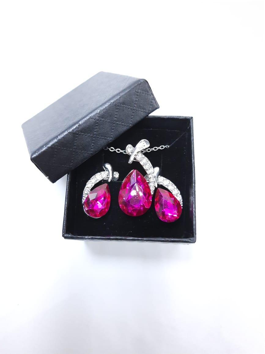 Conteúdo Da Embalagem: 1 Colar De Zircônia Com Strass, 1 Corrente, 2 Brincos Com Pedra De Zircônia E Strass E 1 Caixa Para Manter As Peças Protegidas.
