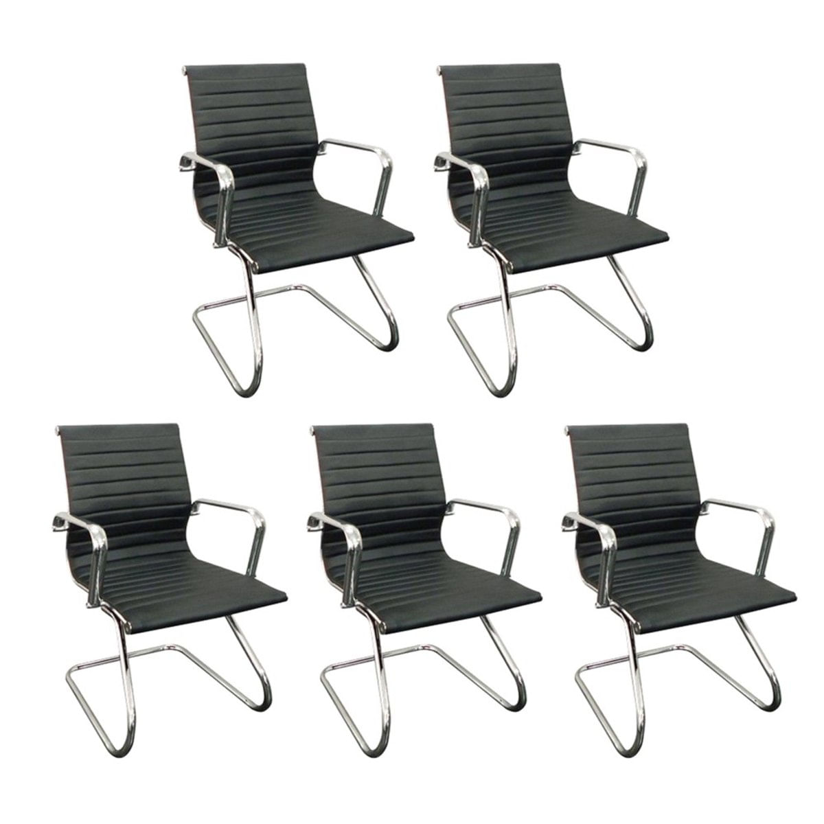 Kit com 5 Cadeiras Executiva com base Fixa Esteirinha Preto, base fixa em metal com apoio antideslizante.