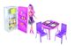 - Dimensões: Geladeira 25,5 Cm (altura) X 8,5 Cm (largura) X 13 Cm (comprimento), Mesa 12 Cm (altura) X 17 Cm (diâmetro), Cadeira 16 Cm (altura) X 18 Cm (largura) X 18 Cm (comprimento), Boneca 17 Cm (altura)