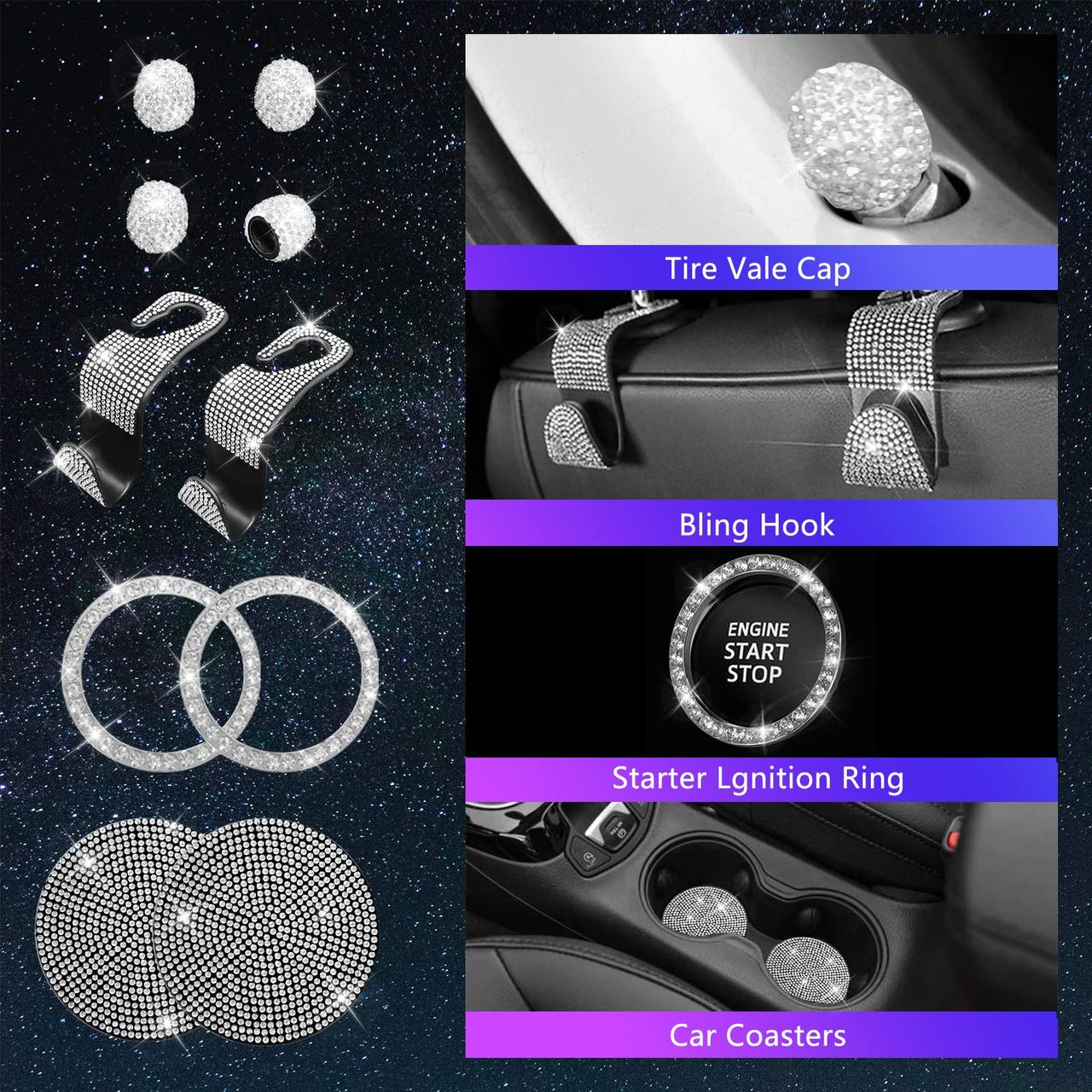 productdescriptiondto(title=conjunto De Acessórios De Carro Jingsen Bling 25pcs Para Roda De 15 Polegadas, Lang=pt, Details=função: