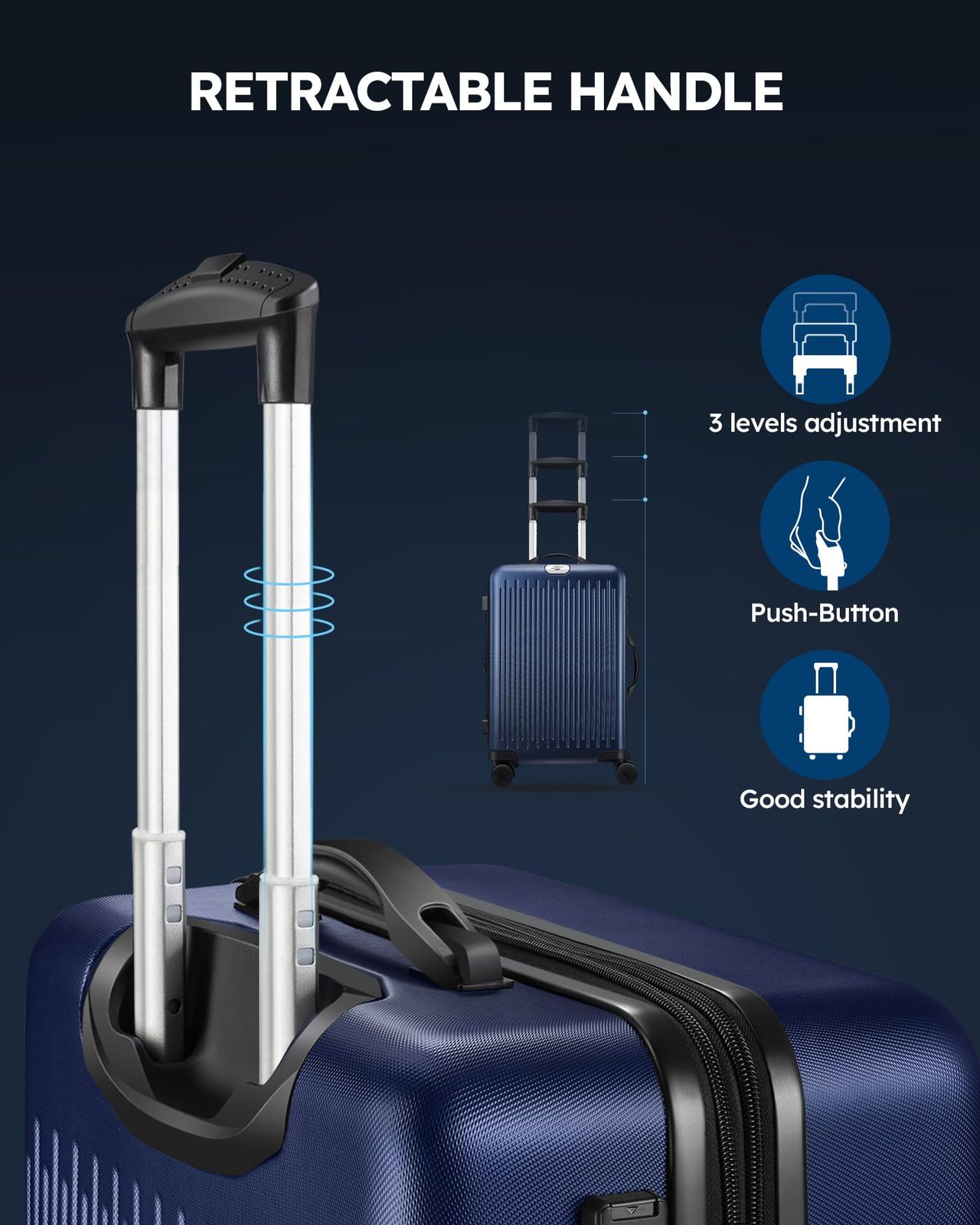 - Conjunto Expansível De 3 Peças: Todas As 3 Malas Podem Se Expandir Para Espaço De Armazenamento Extra Quando Necessário. Os 50,8 Cm São Projetados Para Bagagem De Mão, 61 Cm E 71 Cm Para Verificação. Você Pode Escolher Qualquer Pessoa Para Conhecer Em Uma Viagem Individual Ou Em Família. E Além Disso, As Malas Se Acumulam Umas Nas Outras Para Economizar Espaço