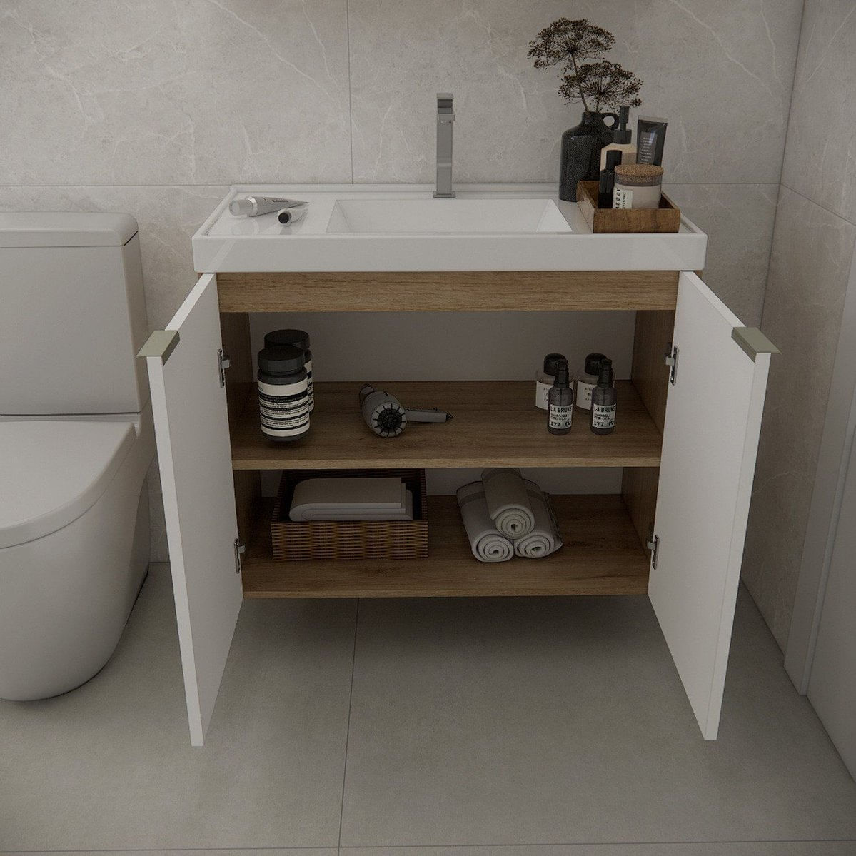 Conjunto De Banheiro Sem Cuba 80cm Vittare Carvalho/branco.