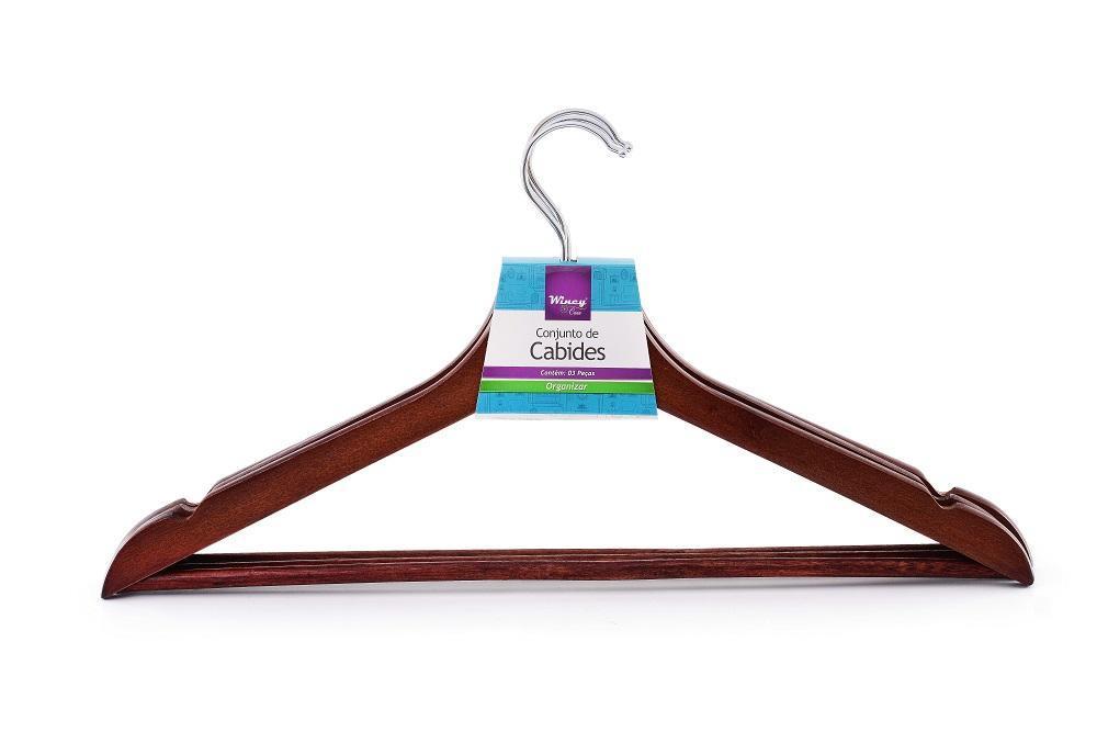 Conjunto De Cabide Madeira 43cm E Peçaso Conjunto De Cabides É Produzido Em Madeira E Possui Revestimento, Contribui Com A Organização Do Seu Guarda-roupas, Pois Acomodam As Roupas De Forma Segura E Prática. Além De Agregar Um Toque De Delicadeza À Organização.medidas: 43cm 3 Peças.material: Madeira.