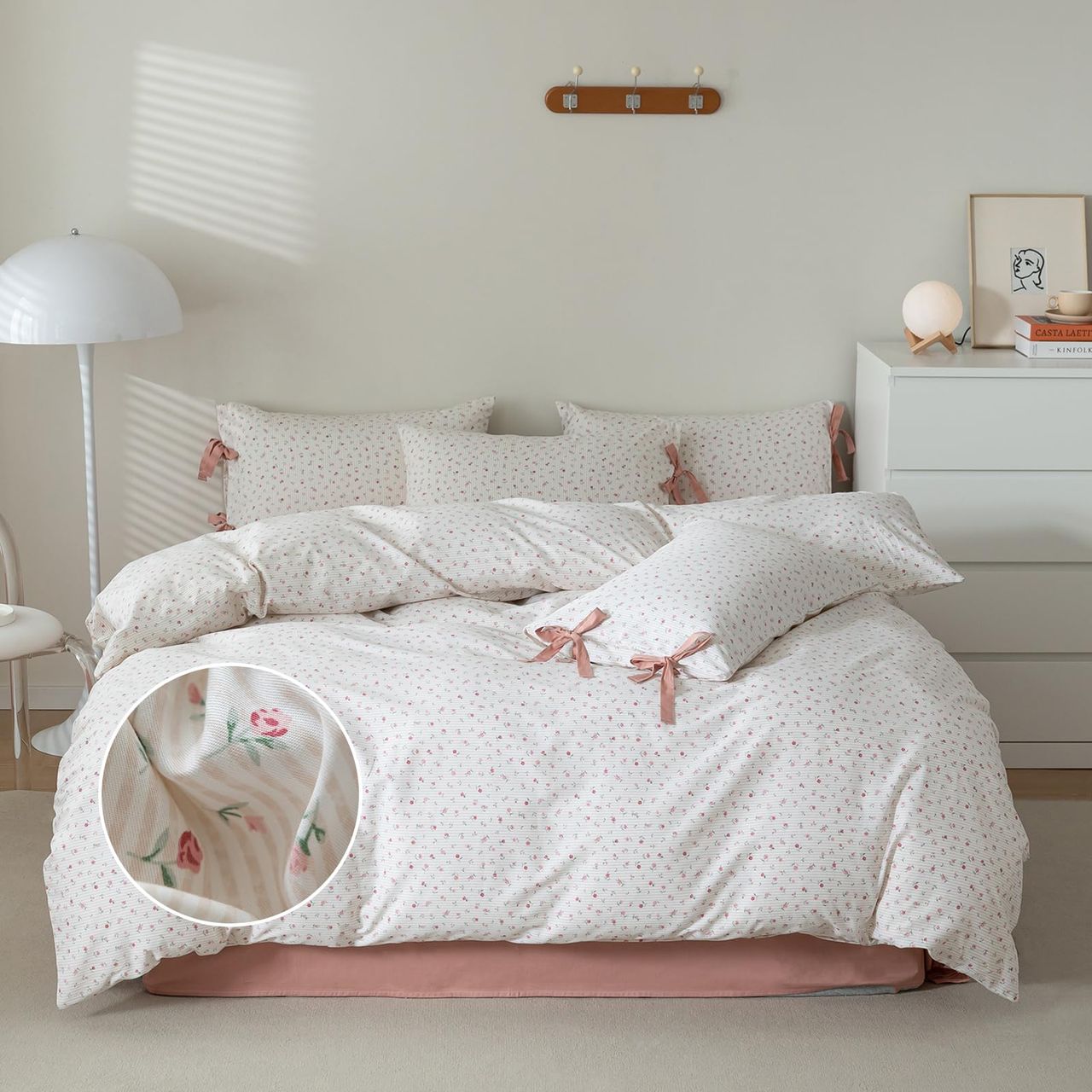 - ★【design Exclusivo De Laço E Um Presente De Feriado Perfeito】-- Decore Sua Cama Com Este Conjunto De Capa De Edredom De Cama King Size E Estética Macia, Esta Capa De Edredom Floral Cottagecore Apresenta Flores Rosa Boho No Conjunto De Capa De Edredom Branco, Com Detalhes De Fita De Estilo Vintage Que Adicionam Um Toque De Nostalgia Ao Seu Quarto. Perfeito Para Universitárias, Meninas, Filha, Esposa, Filho, Amiga, Convidada, Família, Também Um Ótimo Presente Para Regresso A Casa, Casamentos, Aniversários, Dia Das Mães, Dia Dos Namorados, Natal, Feriados E Muito Mais.