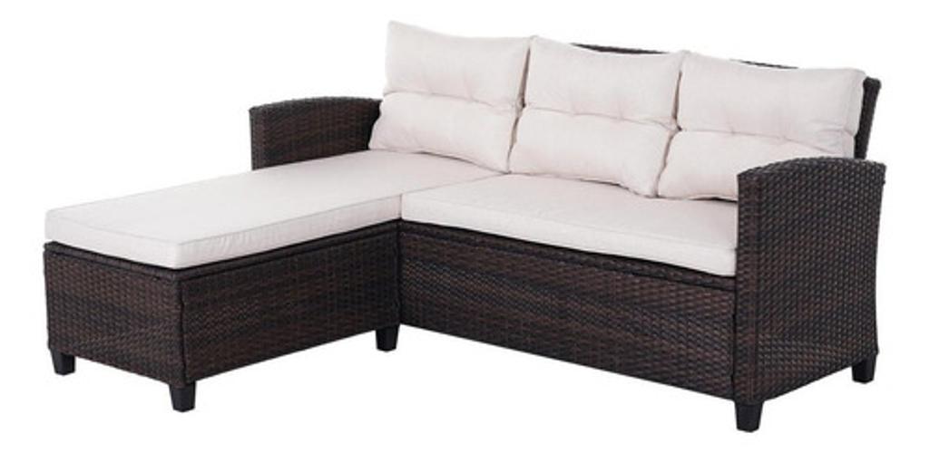 Composto Por 1 Sofa E 1 Banco, Ambos Acompanhados De Almofadas Para Garantir Maior Comodidade. Feito Com Materiais De Alta Qualidade Como Aco, Polietileno E Poliester, Garantindo Durabilidade E Resistencia.