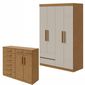 Conjunto De Guarda-roupa 4 Portas 2 Gavetas Zeus e Cômoda 8 Gavetas 2 Portas Toronto Amêndoa Clean/off White.