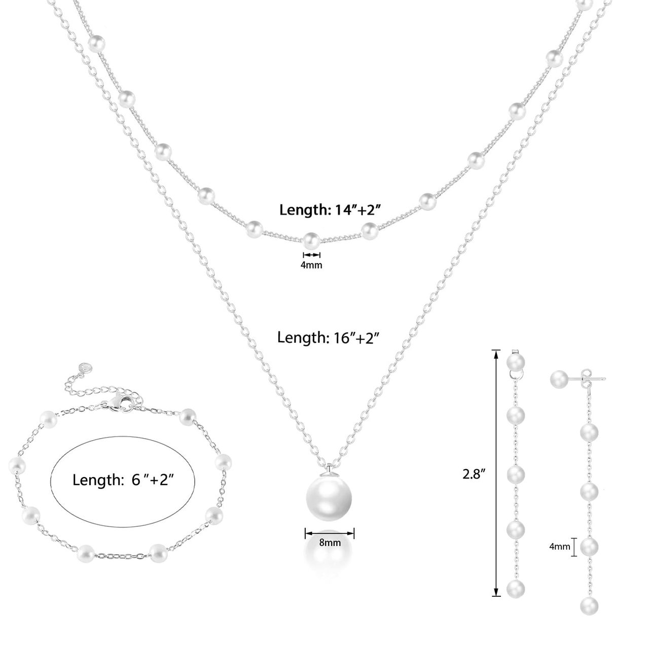 - ❤ Tamanho Do Conjunto De Joias De Pérolas: O Colar De Corrente De Pérolas De 14"+2" E 16"+2", Comprimentos De Pulseira De Pérolas De 6"+2". Você Pode Ajustar Facilmente O Tamanho Da Corrente Para Atender Às Suas Necessidades. Um Único Pingente De Pérola De 8 Mm De Diâmetro, Outra Pérola Tem 4 Mm.