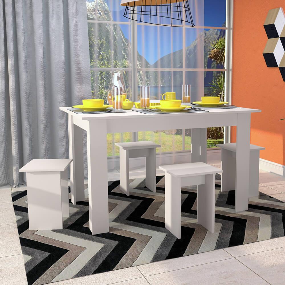 Conjunto De Mesa 120 Cm Com 4 Bancos - Brancoo Conjunto De Mesa Com 4 Banquetas, Vem Para As Pessoas Que Desejam Dar Uma Nova Cara Para Sua Casa, Pois Esse Conjunto Se Adequa Tanto Para Salas De Jantar, Copas, Cozinha, Áreas Externas E Churrascaria. Estrutura Em Mdp, Que Fornece Melhor Resistência À Empenamentos, Impactos E Maior Estabilidade. Pintura Em Finish Foil, Deixando O Móvel Mais Bonito E Resistente.mdppainel De Madeira Formado Por Partículas De Madeira De Média Densidade, É Também O Mais Consumido No Mundo. É Produzido Em Prensas Contínuas De Última Geração, Sendo Um Dos Produtos Mais Tecnológicos E Econômicos Para Produção De Móveis De Linhas Retas Ou Que Precisam Receber Pinturas E Revestimentos De Qualquer Material. Apresenta Excelente Resultado Em Móveis Para Dormitórios, Escritórios, Cozinhas, Painéis Para Decoração, Prateleiras, Tampos E Base Superior/inferior. Com O Manuseio Correto E Dispositivos De Montagem, Pode Ser Montado E Desmontado Quantas Vezes For Necessário.garantia03 Meses Garantia De Fábrica.características- Branco- Estrutura : Mdp- Acabamento : Finish Foil- 1 Mesa- 4 Banquetas- Móvel Entregue Desmontadodimensõesaltura: 76,5 Cmlargura: 120 Cmprofundidade: 80 Cmoutras Informações- A Montagem Não Está Inclusa Ao Produto.- Na Limpeza Não Utilizar Produtos Químicos E Abrasivos, Usar Apenas Com Pano Umedecido, Para Garantir A Maior Durabilidade Do Móvel.- Os Objetos Que Ambientam As Fotos Não Acompanham O Produto.- Imagens Meramente Ilustrativas. Cores E Tonalidades Podem Variar.- Antes De Comprar O Seu Produto Verifique As Medidas, O Local Onde Pretende Instalar E Se É Necessário Contratar O Serviço De Um Profissional Qualificado.