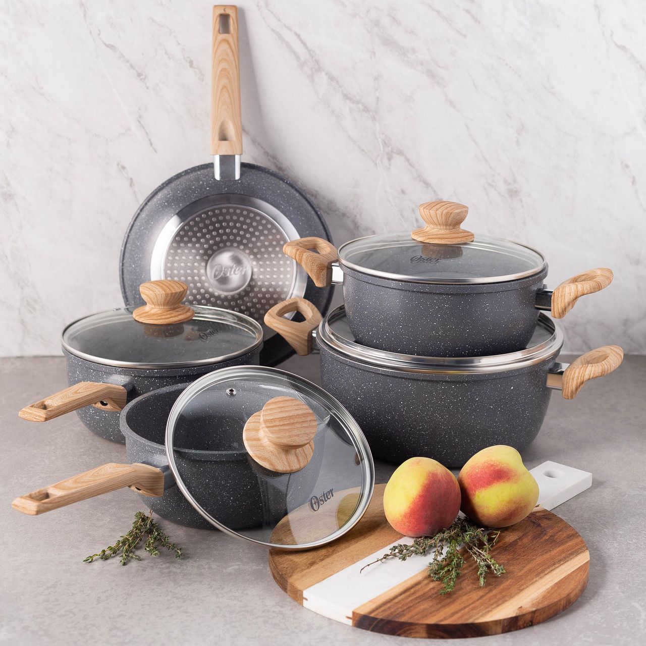 Conjunto De Panelas Marble Edition Preta Oster 5 Peças