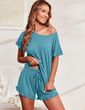 - Característica Do Pijama Macio: Este Pijama Com Gola Redonda, Bainha Com Babados, O Tecido É Confortável, Macio E Texturizado. Este Short De Pijama Com Cordão Na Cintura Pode Facilmente Ajustar A Circunferência Da Cintura, Adequado Para Todas As Mulheres.