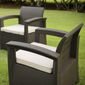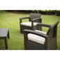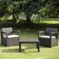 Conjunto de Sofá 2 Lugares Para Jardim/Área Externa Rattan - D7HOME. ..Para uso em area interna e externa o Conjunto de Sofá 2 Lugares Para Jardim/Área Externa Rattan - D7HOME é resistente aos.raios UV, possuem em sua materia prima aditivos de ultima geraçãoFácil de limpar.. ..Montagem rapida e fácil.Facilidade para transportar, manusiar e armazenar.. ..Composição:.- 2 Poltronas 69x61.5x75cm - Cor Marron.- Mesa Centro 72x52x38cm - Cor Marron. ..- Fabricado em PP com Aditivo UV.- Almofadas em Polyester 5cm altura, densidade 25 - Cor Bege.- Revestimento das Almofadas em Polyester 240gr/m2".- Design moderno