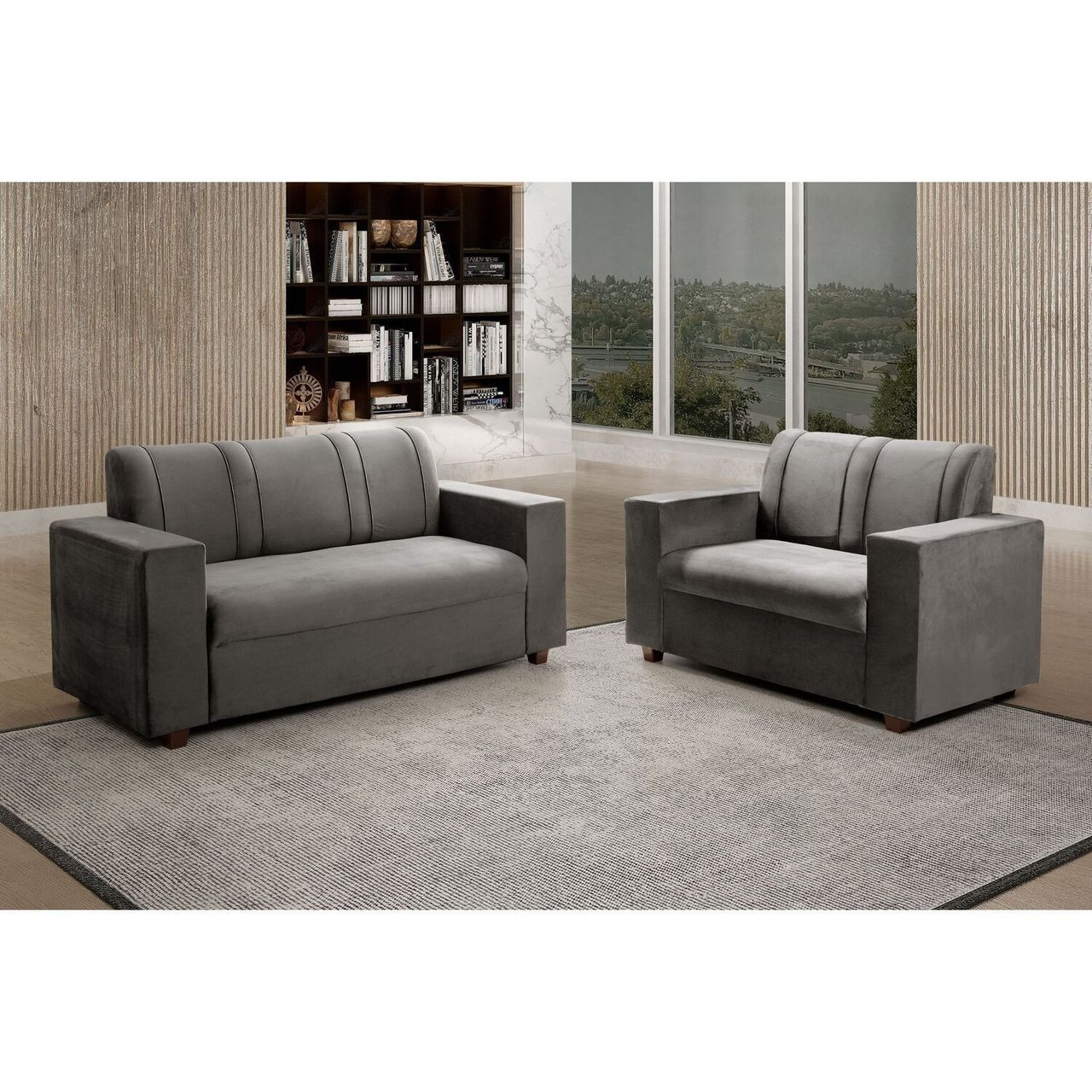Estilo: Clássico | Peso (kg): 66 | Garantia: 03 Meses | Altura (cm): 85 | Largura (cm): 165 | Possui Pés: Sim | Possui Mola: Sim | Pet Friendly: Não | Tipo De Sofá: Conjuntos De Sofás | Modelo Do Sofá: Sofá Fixo | Possui Rodízio: Não | Suporta Até (kg): 150 | Estilo De Braço: Braços Quadrados | Profundidade (cm): 75 | Tipo De Encosto: Fixo | Largura Do Braço: 20 | Altura Do Encosto: 85 | Origem Do Produto: Nacional | Ambiente Principal: Sala De Estar | Firmeza Do Assento: Firme | Quantidade De Itens: 2 | Tecido Predominante: Suede | Densidade Do Assento: D-23 | Densidade Do Encosto: Camadas De Densidades Diferentes | Enchimento Do Assento: Fibra Siliconada | Enchimento Do Encosto: Espuma | Quantidade De Lugares: 02 E 03 | Revestimento Do Braço: Suede | Serviço Impermeabilização: 102610509 | Acompanha Almofadas Extras: Não | Possui Percintas Elásticas: Sim | Altura Do Assento Até O Chão: 48 | Fabricante: Vivarodecor | Marca: Vivarodecor | Cor: Cinza | Cor Do Produto: Cinza | Itens Inclusos: 1 Sofá 2 Lugares E 1 Sofá 3 Lugares | Cor Predominante: Cinza