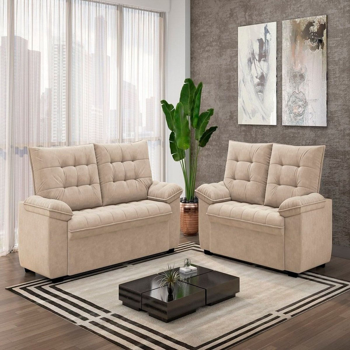 Conjunto De Sofás Estofados 3 E 2 Lugares Bertioga Capuccino.