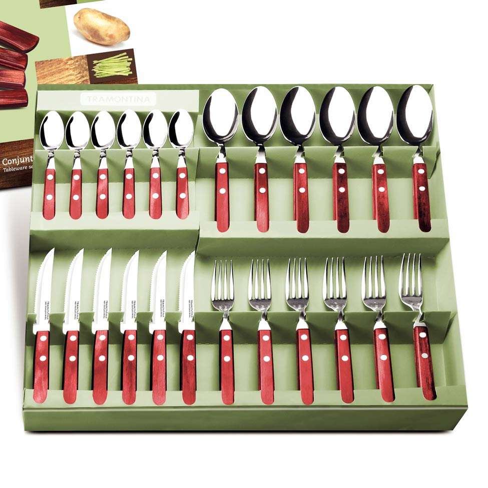 Utilidades DomésticasCozinhaFaqueiroConjunto de Talheres Inox 24 Peças Vermelho 43cm Tramontina
