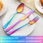- Visual Exclusivo De Arco-íris: A Aparência Única De Arco-íris Se Destaca Dos Talheres Comuns, Que São Mais Nobres E Elegantes. A Superfície Lisa E O Acabamento Fino O Tornam Mais Luxuoso, Criando Uma Atmosfera De Jantar Elegante E Luxuosa, Que Impressionará Sua Família E Amigos. Não Há Necessidade De Se Preocupar Com Desbotamento Ou Rachaduras, Pois Esta É Uma Camada De Metal Da Tecnologia De Revestimento A Vácuo. Se Você Quiser Ser Diferente Em Utensílios De Mesa, Não Vai Perder.