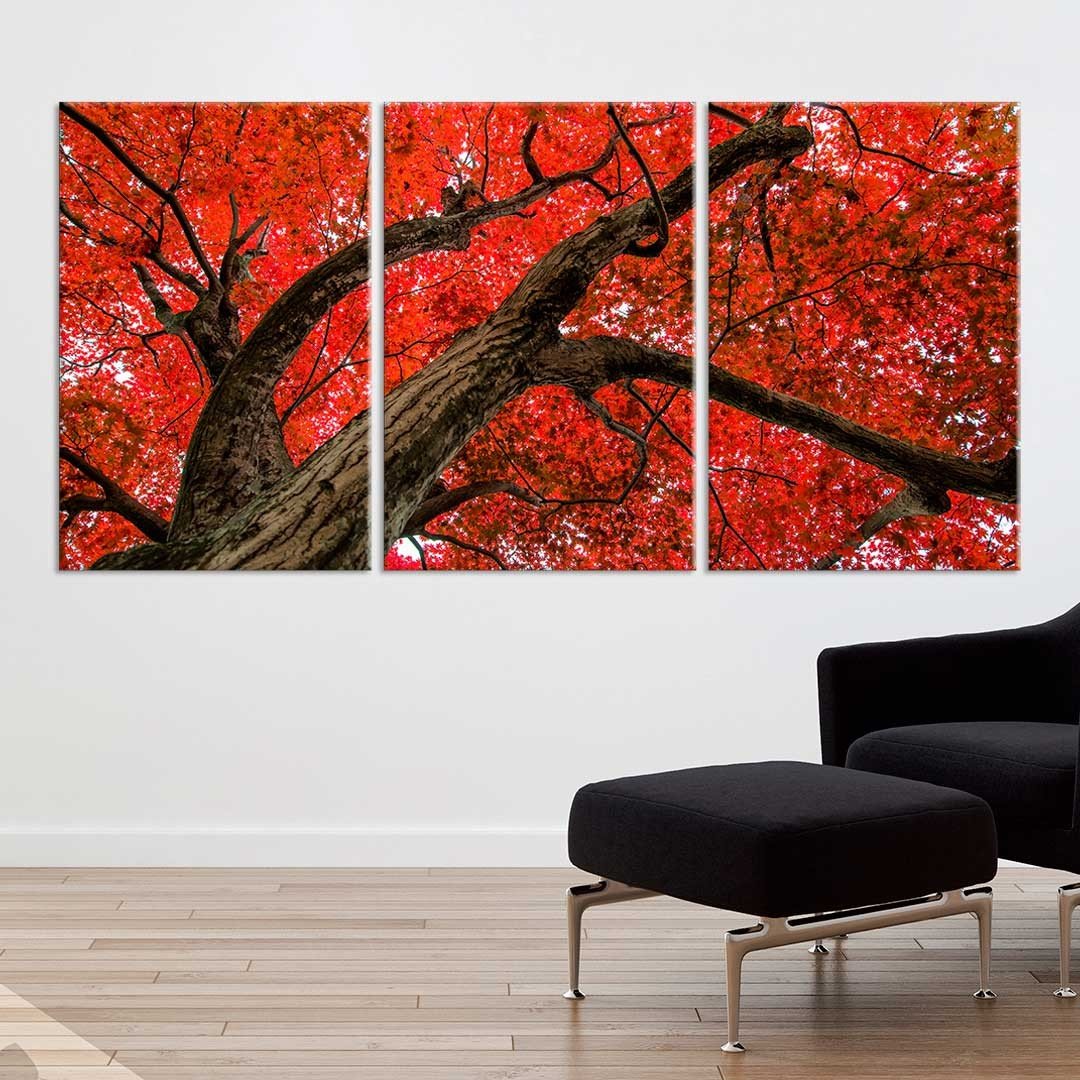 Conjunto de Tela Decorativa Red Tree Grande - ...Características Gerais do Produto:.. Acompanha: Kit de Instalação. Tema: Diversos, Por Art, Decorativo. Acabamento: Acabamento Selado. Tamanho Montado: - Tamanho Total Médio 60x125cm (60x40cm cada Tela), - Tamanho Total Grande 90x185cm (90x60cm cada Tela). Tecido: 100% Poliester Canvas. Bordas: Arte contínua nas laterais. Estampa: Digital de Alta Qualidade, Aplicado por Termotransferência. Conteúdo da Embalagem: - Conjunto 3 Telas Decorativas, - 1 Manual de Colocação. Gênero: unissex. Faixa etária: Acima de 13 anos..Acompanha o produto:.. - Conjunto com 3 telas em canvas..- Manual de instalação...Garantia:.. Garantia contra defeito de fabricação