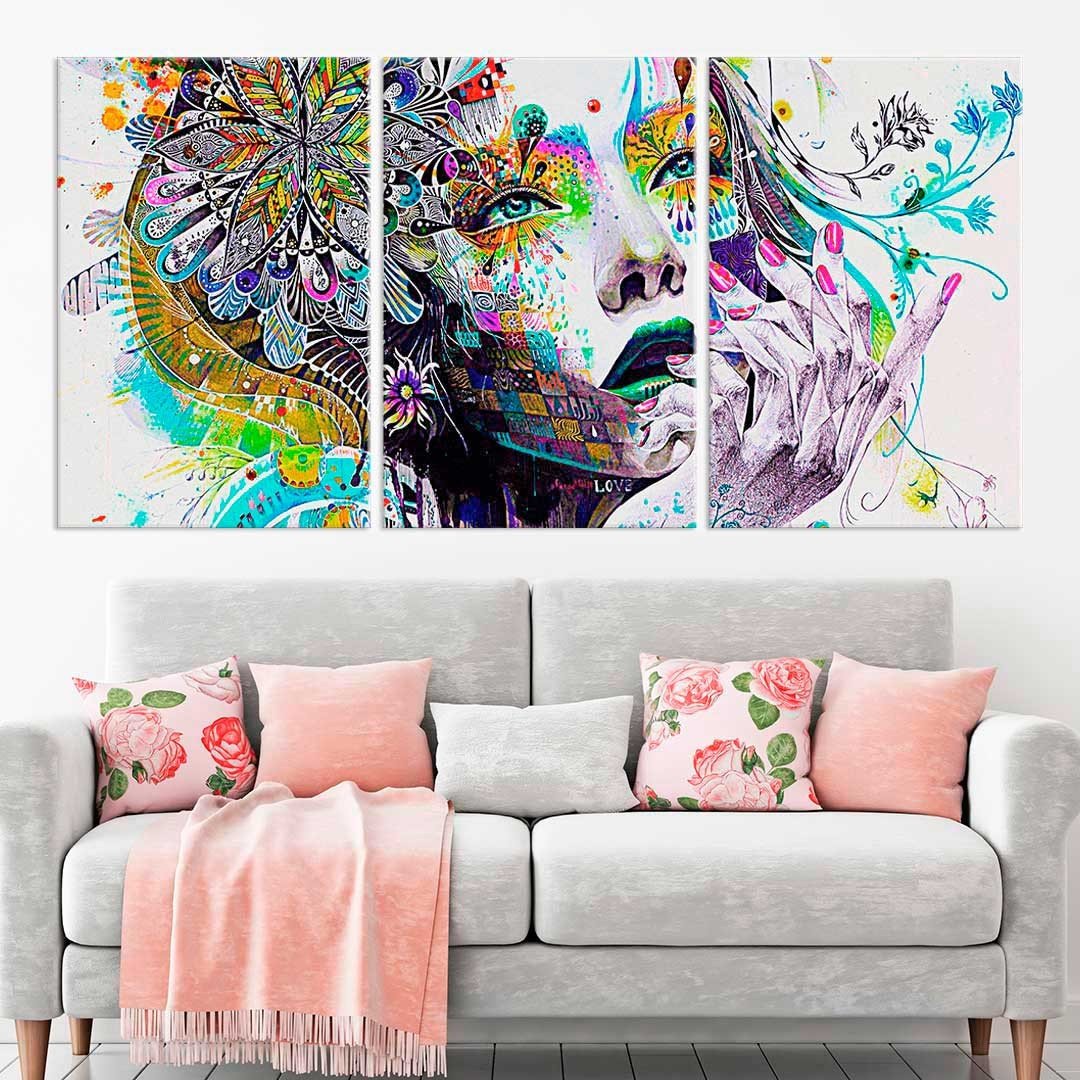 Conjunto de Telas Decorativas Abstrato Face Grande - ...Características Gerais do Produto:.. Acompanha: Kit de Instalação. Tema: Diversos, Por Art, Decorativo. Acabamento: Acabamento Selado. Tamanho Montado: - Tamanho Total Médio 60x125cm (60x40cm cada Tela), - Tamanho Total Grande 90x185cm (90x60cm cada Tela). Tecido: 100% Poliester Canvas. Bordas: Arte contínua nas laterais. Estampa: Digital de Alta Qualidade, Aplicado por Termotransferência. Conteúdo da Embalagem: - Conjunto 3 Telas Decorativas, - 1 Manual de Colocação. Gênero: unissex. Faixa etária: Acima de 13 anos..Acompanha o produto:.. - Conjunto com 3 telas em canvas..- Manual de instalação...Garantia:.. Garantia contra defeito de fabricação