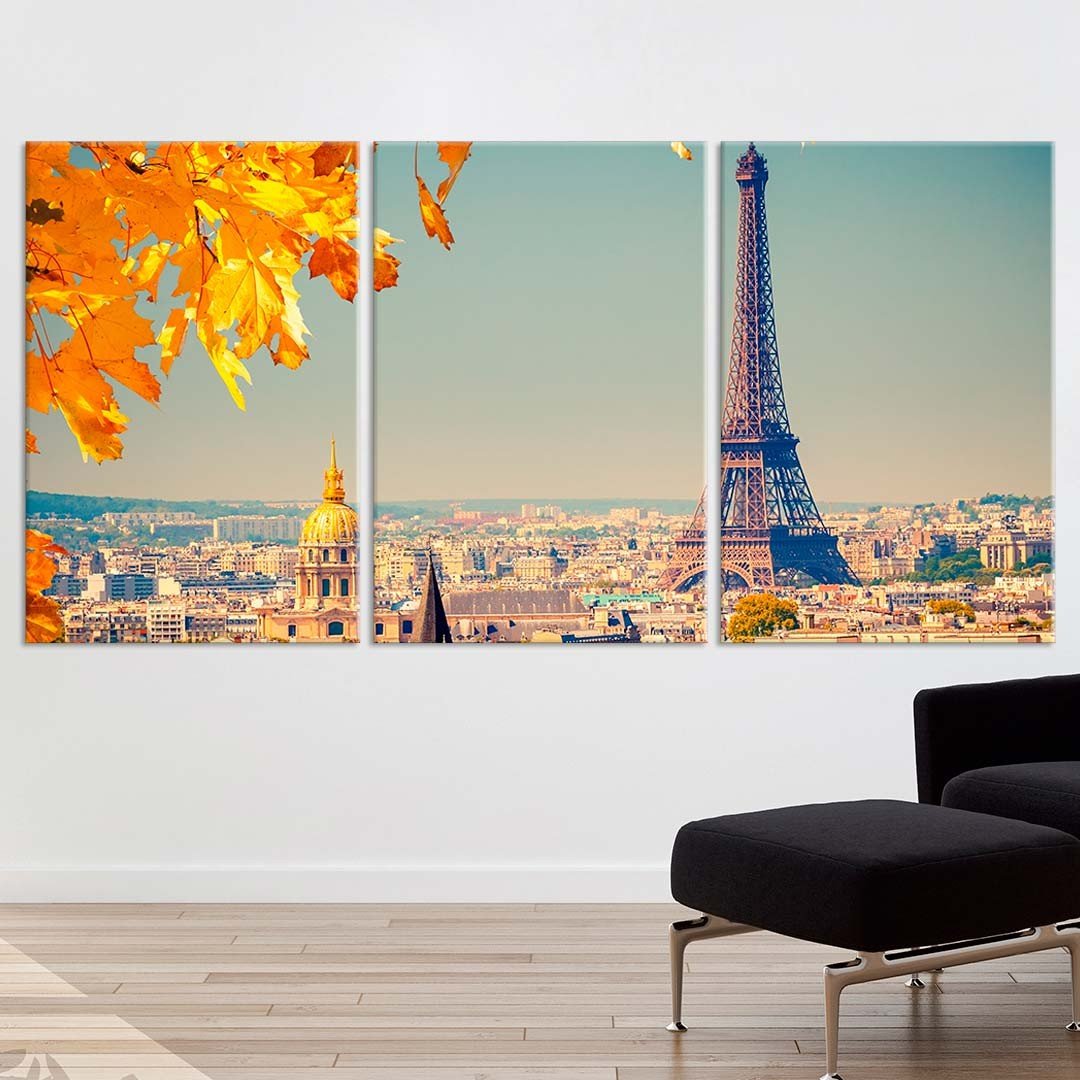 Conjunto de Telas Decorativas Paris Torre Eiffel Médio - ...Características Gerais do Produto:.. Acompanha: Kit de Instalação. Tema: Cidades, Diversos, Paisagem, Decorativo. Acabamento: Acabamento Selado. Tamanho Montado: - Tamanho Total Médio 60x125cm (60x40cm cada Tela), - Tamanho Total Grande 90x185cm (90x60cm cada Tela). Tecido: 100% Poliester Canvas. Bordas: Arte contínua nas laterais. Estampa: Digital de Alta Qualidade, Aplicado por Termotransferência. Conteúdo da Embalagem: - Conjunto 3 Telas Decorativas, - 1 Manual de Colocação. Gênero: unissex. Faixa etária: Acima de 13 anos..Acompanha o produto:.. - Conjunto com 3 telas em canvas..- Manual de instalação...Garantia:.. Garantia contra defeito de fabricação