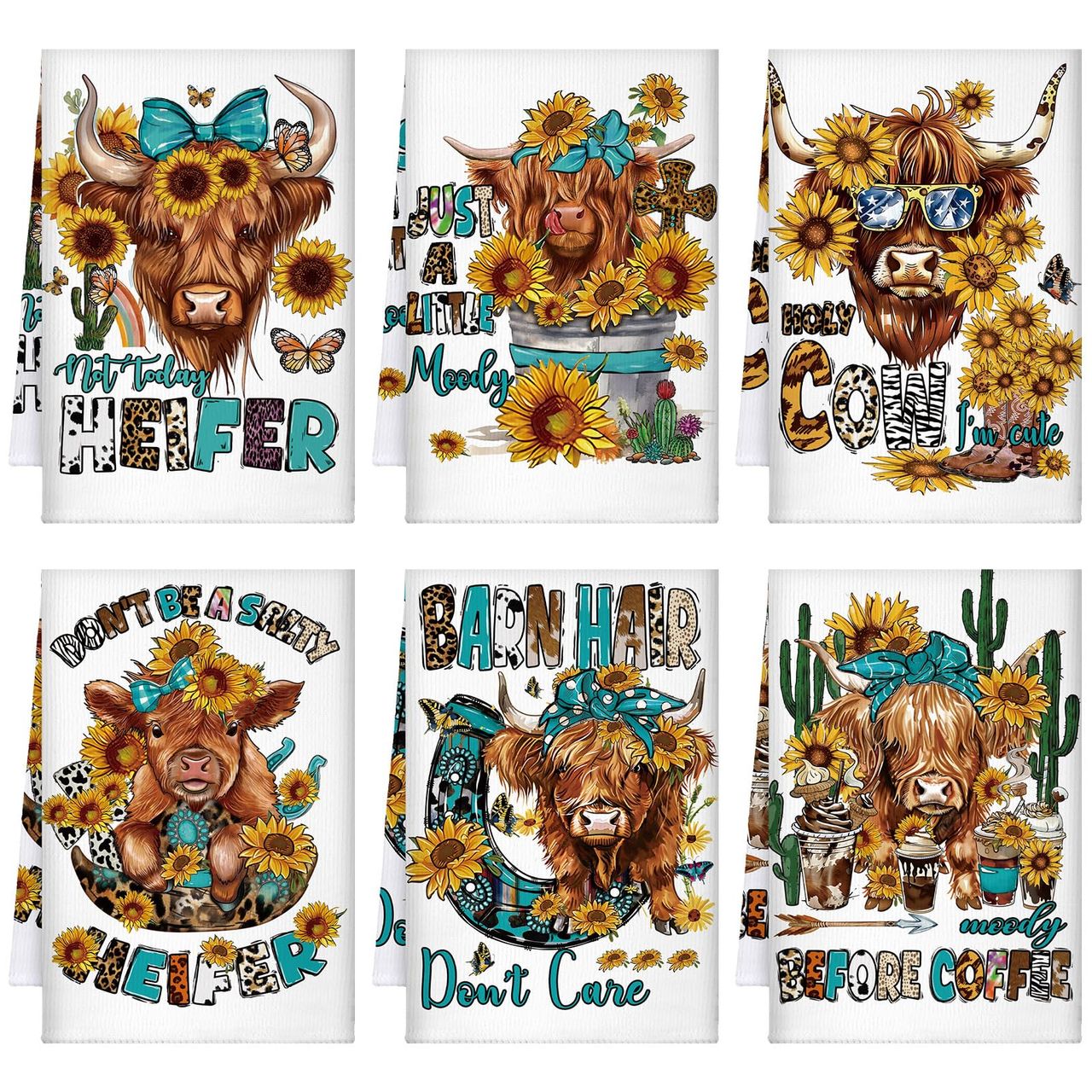 O Pacote Contém 6 Peças De Toalhas De Cozinha Com Vacas, Fazendo Cócegas Na Fantasia Dos Amantes De Vacas Das Terras Altas, Um Presente Ideal Para Entusiastas De Vacas, Estas Toalhas Atendem A Uma Variedade De Ocasiões E Propósitos.