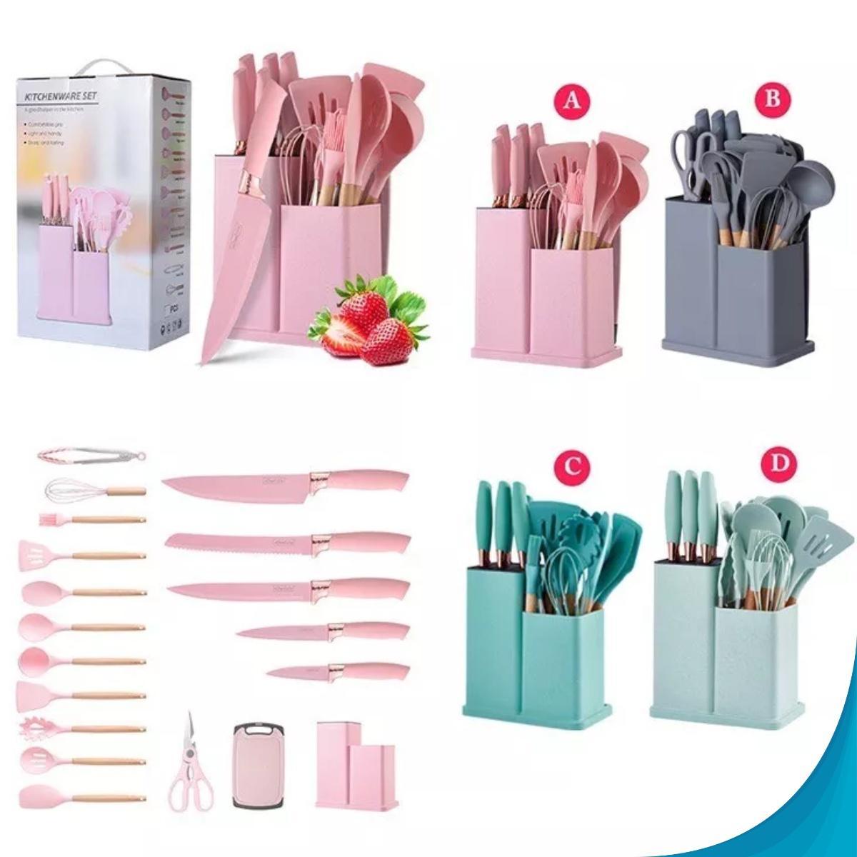 Conjunto De Utensílios Cozinha 19 Peças Com Faca Oficial Preto