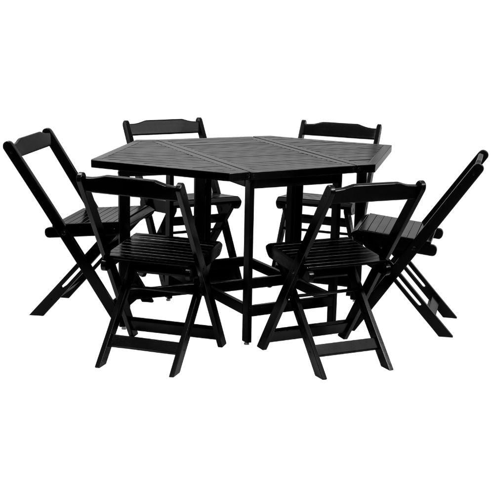 Conjunto Dobrável Em Madeira Maciça De Eucalipto Rosa Acompanha 6 Cadeiras Pratico E Durável Com Furo Para Ombrelene
