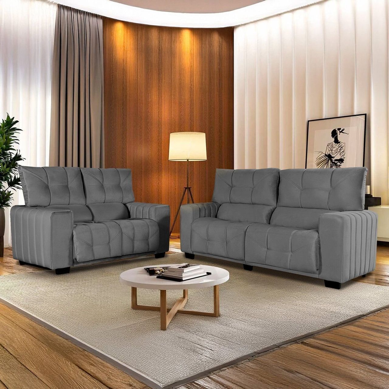 O Conjunto Estofado Le Mans Une Conforto, Elegância E Praticidade Para Transformar Sua Sala Em Um Ambiente Acolhedor E Sofisticado. Disponível Nas Cores Platinum Marrom, Marrom E Grafite, Ele Combina Facilmente Com Diversos Estilos De Decoração, Valorizando O Espaço Com Um Toque Moderno.
