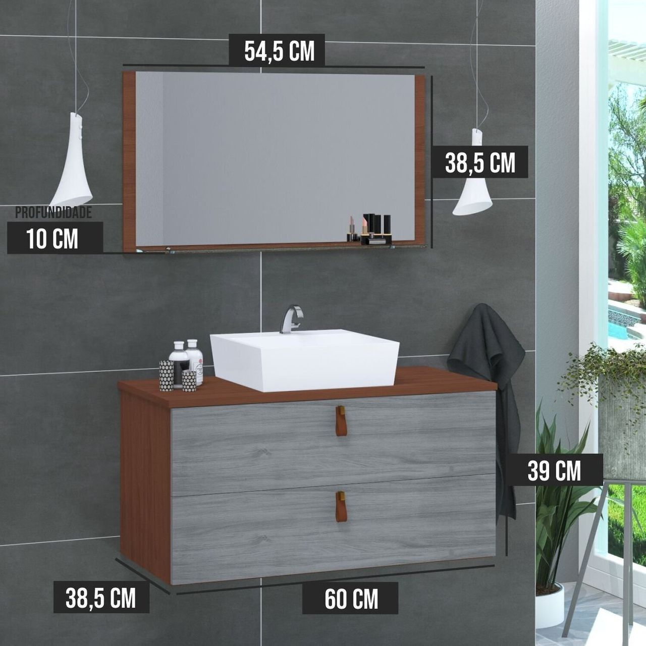 Conjunto Gabinete De Banheiro Berlim 60 Cm Natura Rovere.