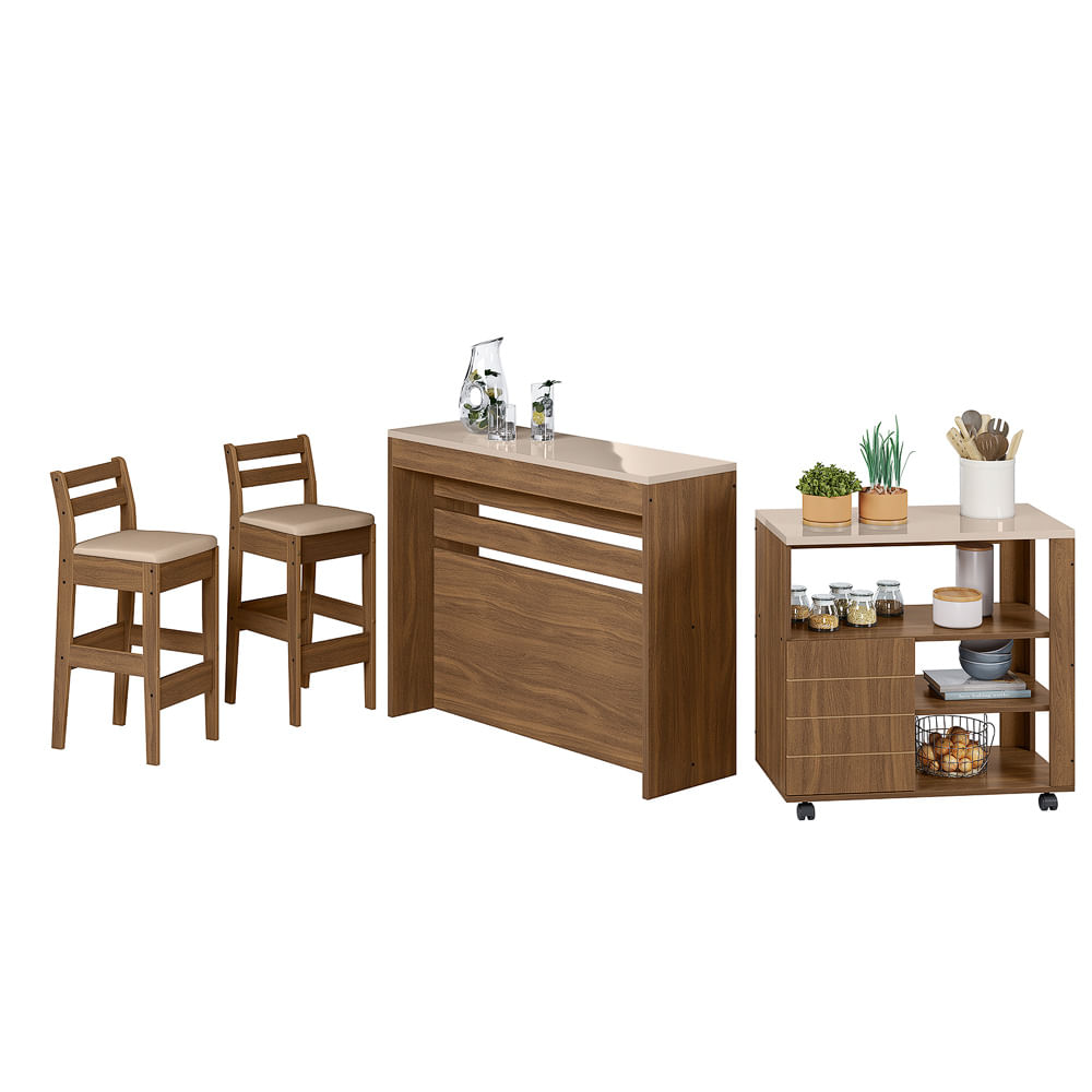 1 Bancada (mdf/mdp ) 1 Mesa Auxiliar (mdf/mdp) 2 Banquetas (mdf) Com Assentos Estofados