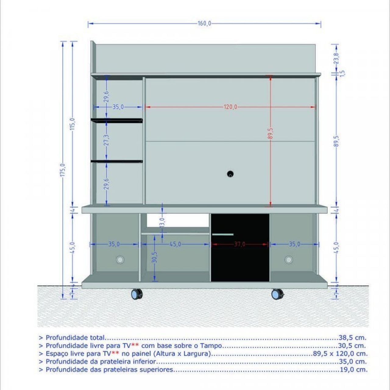 O Conjunto Home Taurus Com Aparador Buffet Opala É Ideal Para Sua Casa! Home Com Rodízios Que Facilitam A Locomoção E Tampo De 40mm. Espaço Para Tvs De 47, E Prateleiras Ideias Para Acomodar Os Mais Variados Tipos De Objetos De Decoração. Espaços Exclusivos Para Acomodar Caixas De Som E Equipamentos Que Complementem Sua Tv. O Buffet Opala Possui Designer Retrô, Com Pés De Madeira Maciça E Portas Com Puxadores De Mdf Revestido. Tampo De Mdf De 25mm Chanfrado Em Ângulo, Agregando Ainda Mais Charme E Requinte. Possui Também Duas Prateleiras Internas, Sendo Uma Delas Com Altura Ajustável Ou Até Mesmo Removível.