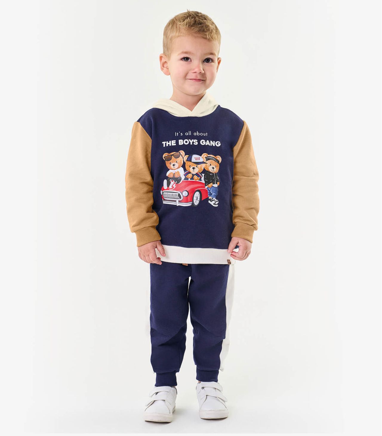 O Conjunto Infantil Blusão Com Calça Trick Nick É A Escolha Perfeita Para Os Pequenos Cheios De Estilo. Confeccionado Em Moletom, O Blusão Apresenta Um Capuz Que Adiciona Um Toque Moderno, Além De Aplique Termocolante E Estampa Que Garantem Um Visual Único. A Calça, Também Em Moletom, Possui Cós Em Ribana Com Elástico Para Conforto Máximo E Um Recorte Lateral Que Confere Um Toque De Modernidade Ao Conjunto. Ideal Para Dias Descontraídos.
