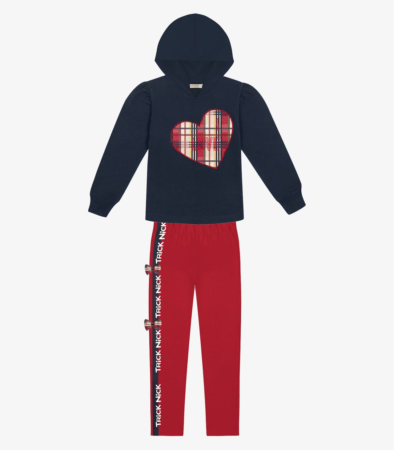 O Conjunto Infantil Blusão Com Legging Trick Nick É A Combinação Perfeita De Estilo E Conforto. O Blusão, Confeccionado Em Molecotton, Apresenta Um Capuz E Detalhes Encantadores Como Franzido Nas Mangas E Um Aplique Em Cotton Digital Bordado, Formando Um Coração Reluzente Com Lantejoulas. A Legging, Também Em Molecotton, Possui Cós Virado E Estampa Vibrante, Complementada Por Um Laço Aplicado De Maneira Elegante Na Lateral. Ideal Para Proporcionar Liberdade De Movimento.