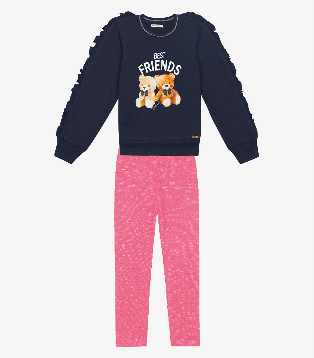 Descubra O Encanto Do Conjunto Infantil Blusão Com Legging Trick Nick, Confeccionado Em Molecotton E Molecotton Lurex. O Blusão Apresenta Decote Em Retilínea, Com Um Delicado Recorte E Babado Franzido Embutido Na Manga. O Aplique Urso Toque Zero Com Estampa Acrescenta Um Toque De Fofura E Modernidade. A Legging, Com Cós Colocado E Elástico, Proporciona Conforto E Liberdade De Movimento. Este Conjunto É Perfeito Para As Pequenas Expressarem Seu Estilo Único Com Elegância.