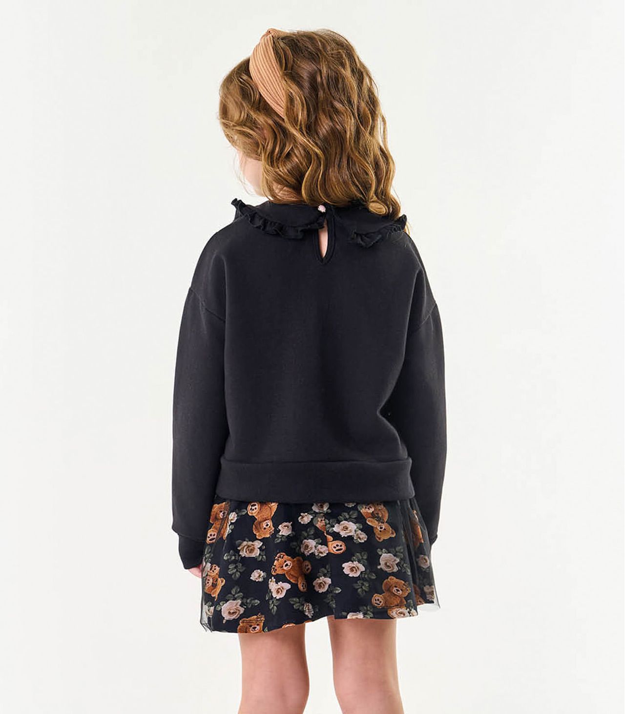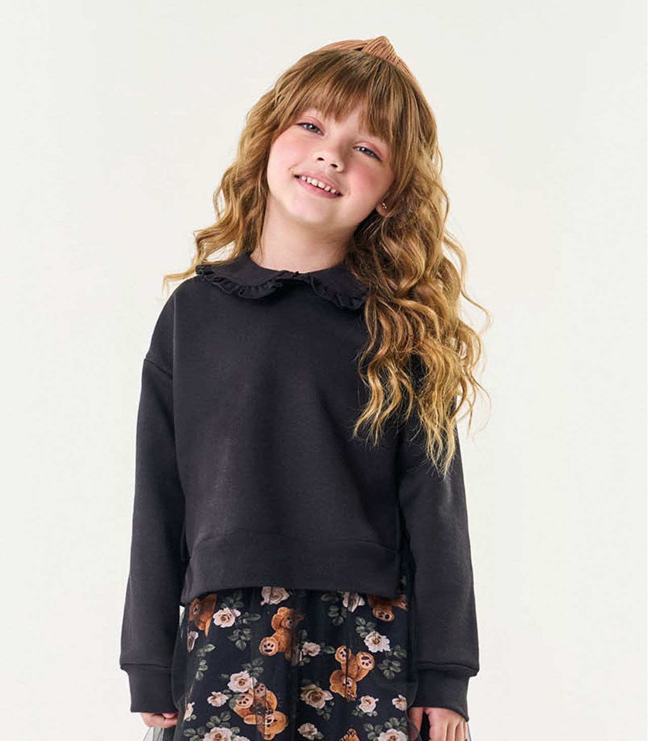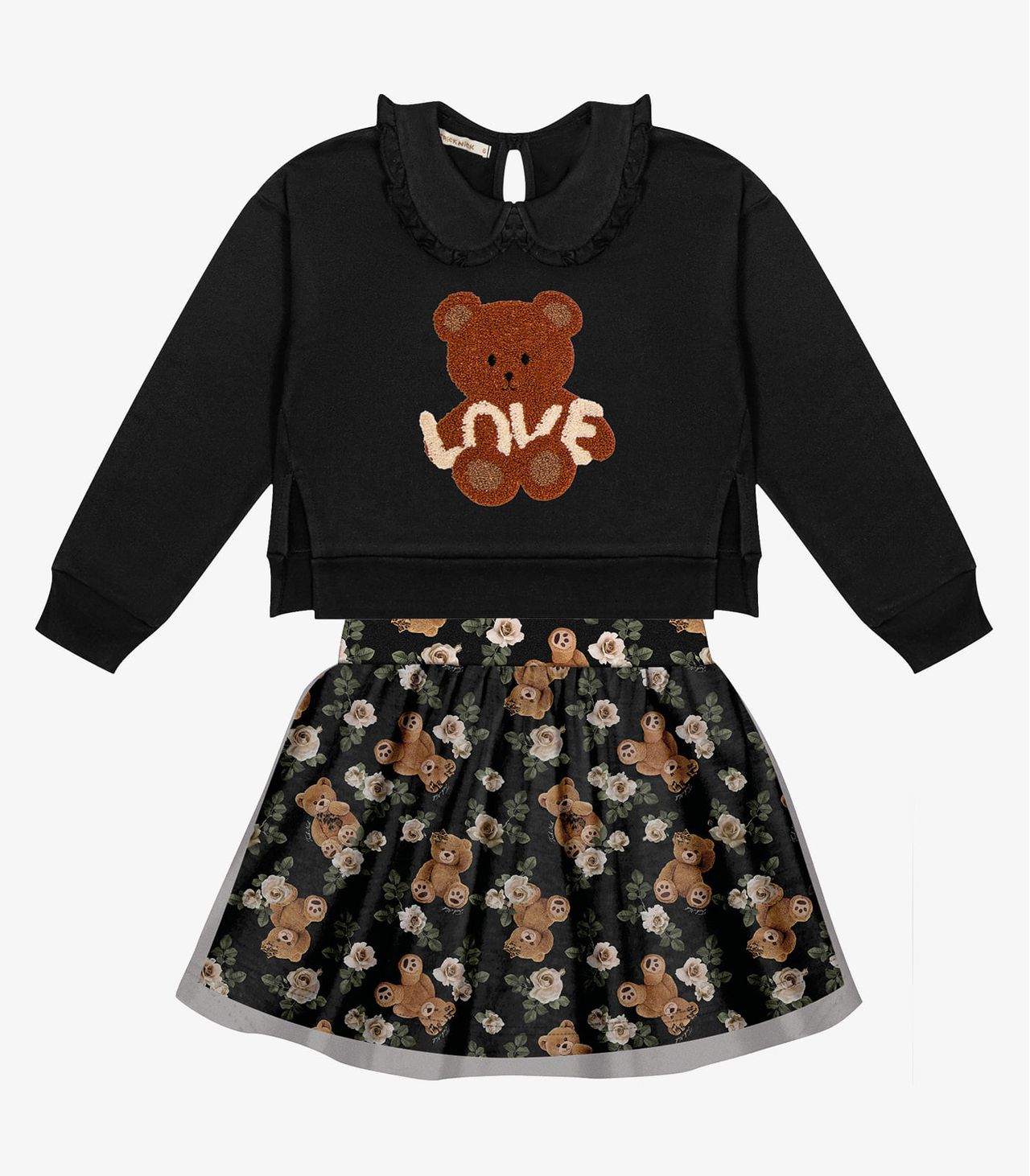 O Conjunto Infantil Blusão Com Saia Trick Nick É A Combinação Perfeita De Conforto E Estilo Para As Pequenas Fashionistas. O Blusão, Confeccionado Em Moletom E Molecotton, Destaca-se Pela Gola Dupla Com Babado Franzido, Conferindo Um Toque Delicado. Com Ombro Deslocado E Estampa Com Chenille, A Peça Transmite Modernidade E Charme. A Saia, Composta Por Tule, Adiciona Um Toque Encantador Ao Conjunto, Com Um Shorts Interno Para Praticidade E Liberdade De Movimento.