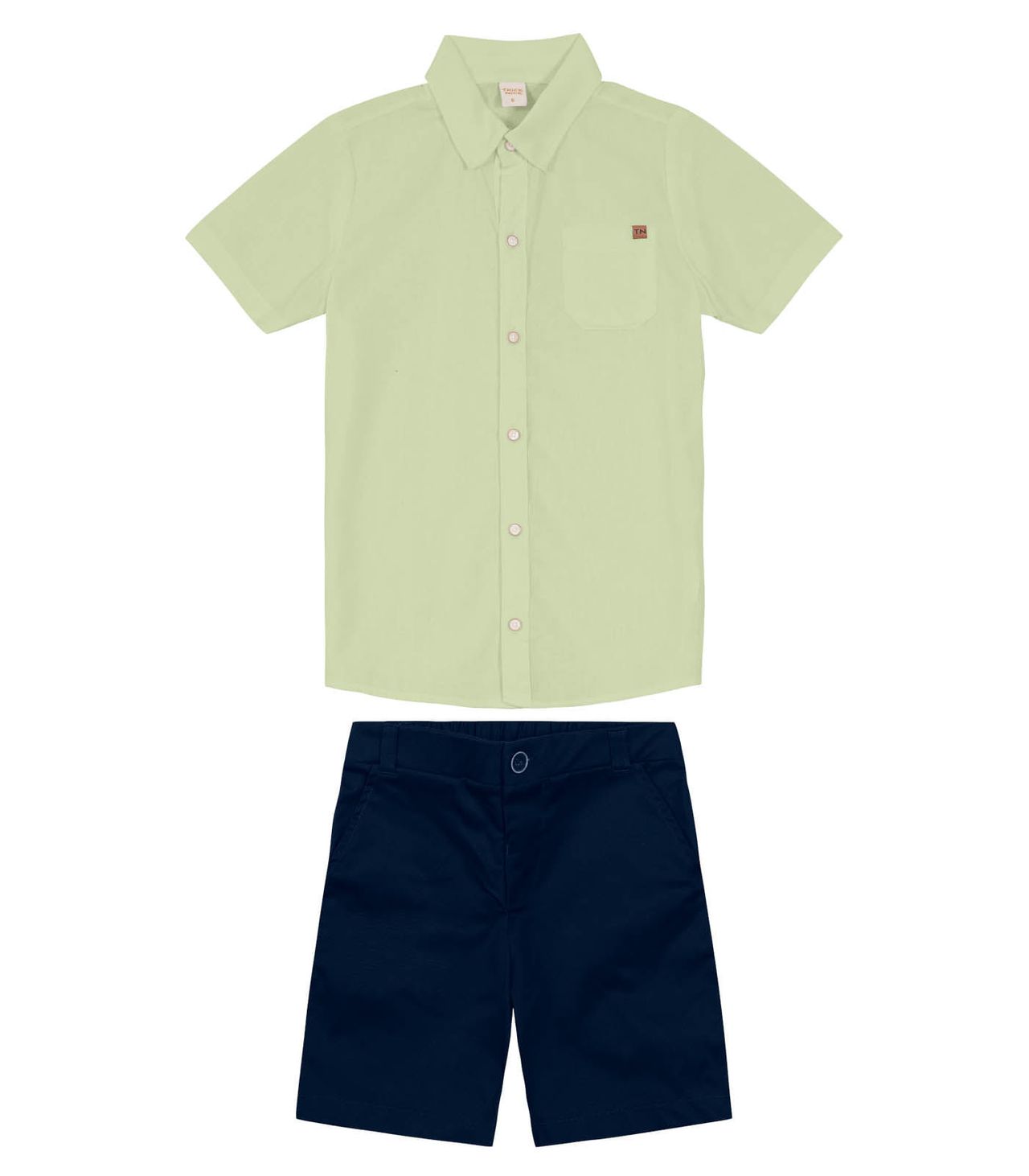 O Conjunto Infantil Camisa Com Bermuda Trick Nick É A Escolha Perfeita Para Deixar Os Pequenos Cheios De Estilo E Conforto. A Camisa, Confeccionada Em Linho Light, Apresenta Um Fechamento Em Botões Que Facilita O Vestir, Além De Um Charmoso Bolso Com Etiqueta Clip. A Bermuda, Feita Em Sarja Twill, Possui Um Cós Na Frente Liso Com Elástico, Proporcionando Um Ajuste Perfeito. Um Único Botão Acrescenta Um Toque De Elegância, Enquanto Os Bolsos Laterais Garantem Praticidade.