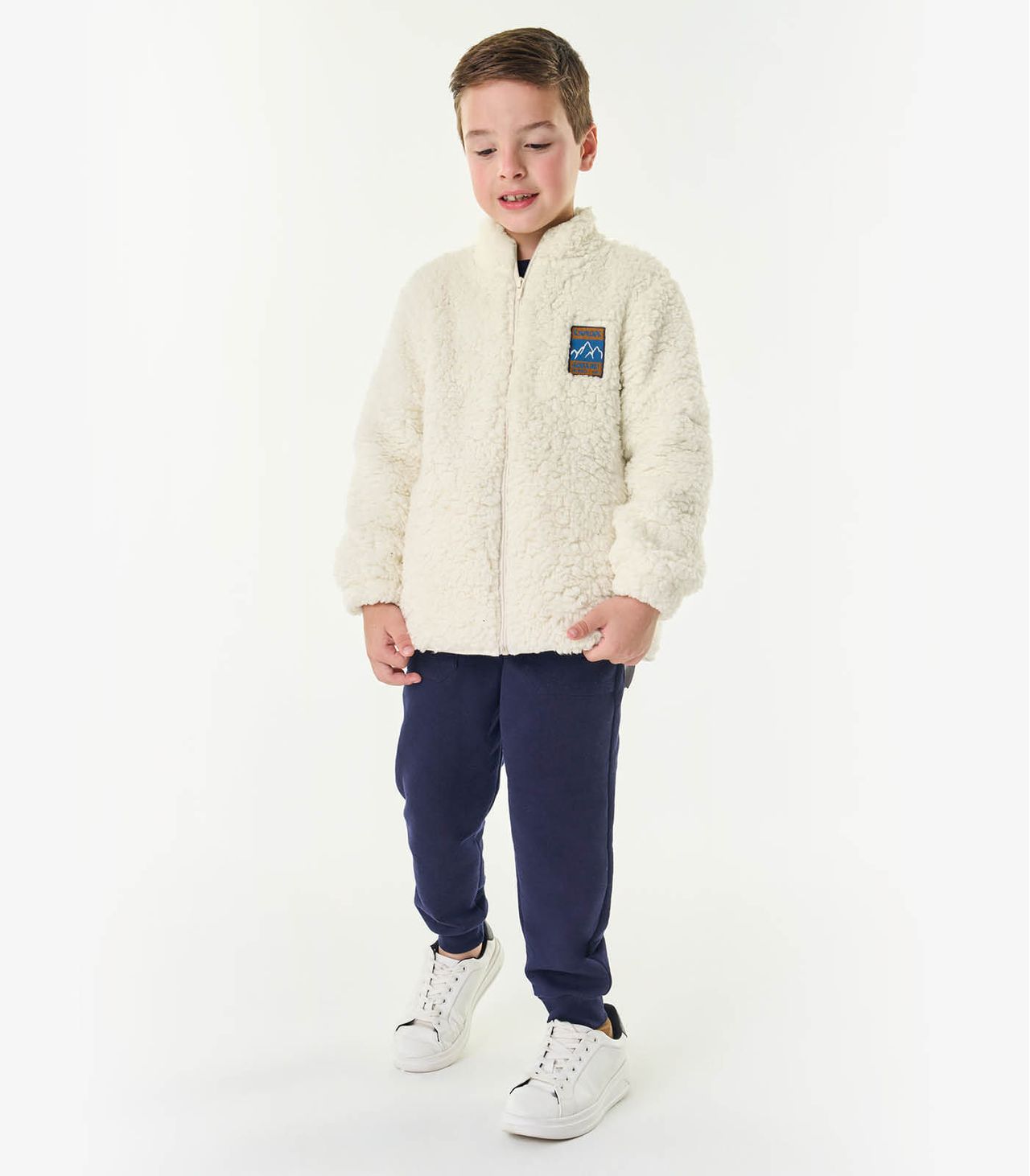 O Conjunto Infantil Casaco Com Calça Trick Nick É A Escolha Perfeita Para Os Pequenos Fashionistas. O Casaco, Confeccionado Em Pelo Sintético Carneirinho, Proporciona Conforto E Um Toque De Sofisticação, Com Gola Alta, Patch Aplicado E Zíper De Nylon Para Praticidade. Os Bolsos Laterais Adicionam Funcionalidade Ao Visual. A Calça, Em Meia Malha E Moletom, Apresenta Cós Colocado Com Elástico Para Ajuste Ideal, Cadarço Funcional E Bolso Sobreposto, Garantindo Um Conjunto Completo.