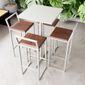 Conjunto mesa Alta Bar Bistrô quadrada Branca 4 banquetas Confort Imbuia industrial White