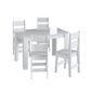 Conjunto Mesa Fixa 4 Cadeiras MDF Milano Branco Lilies Móveis Acompanha mesa charmosa e de fácil harmonização nos ambientes do lar, com requinte e beleza para aconchego em família, podendo utilizar até 04 lugares com bancos, banquetas ou cadeiras. Desenvolvida em MDP de 15mm com robustez e qualidade. Cadeiras são charmosas e elegantes proporcionando beleza e conforto ao seu lar, com assento estofado em tecido branco. Confeccionada em MDF Milano, madeira beneficiada ecologicamente correta. Cor: Branco Material da Mesa: MDP Material das Cadeiras: MDF Medidas da Mesa: 78x120x75cm Medidas das Cadeiras: 46x36x91cm Acabamento da Mesa: UV Brilho Acabamento das Cadeiras: UV Peso recomendado da Mesa: 50kg Peso recomendado das Cadeiras: 100kg Não nos responsabilizamos pela montagem. As imagens são meramente ilustrativas. Conjunto contém: 1 Mesa + 4 Cadeiras MDF Milano