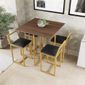 Conjunto De Mesa Imbuia 4 Cadeiras Pequena Estofado industrial Dourado O Conjunto Industrial Premium Faz Parte Da Nossa Coleção De Móveis Industriais, Onde o Design É Minimalista E Geométrico, Além De agregar Na Decoração E Otimizar O Espaço Do Seu Ambiente é Muito Confortável Pois Possui Encosto Com Uma Leve Inclinação. Este Conjunto É Ideal Para Apartamentos, cozinhas, Área De Lazer, Área Gourmet, bares E Restaurantes. (facilmente Adaptável A Qualquer Espaço, Pois As Cadeiras Se Encaixam Na Mesa). O Seu Material É De Aço Com Pintura Em Epóxi Eletrostática Tornando-a Mais Resistente Contra O Clima E Desgastes Naturais. o Assento é De espuma Revestido Com Tecido Sintético Garantindo Alta Resistência E Um Produto De Qualidade E Conforto Excepcional. Descrição Do Produto: Mesa: Cor Do Tampo: Imbuia Material Do Tampo: Madeira Largura: 70cm Comprimento: 70cm Altura: 75cm Estrutura: Aço Carbono Cor: Dourado Semi Brilho Pés com Nivelador De Regulagem E Emborrachados Cadeira: Largura: 34cm Comprimento: 32cm Altura Total: 65cm Altura Do Encosto: 18cm Assento: Espuma D28 Revestido Com Tecido Sintético Conteúdo Da Embalagem: - 1 mesa - 4 Cadeiras Importante: verificar A Integridade Do Produto No Ato Da Entrega, Se A Embalagem Não Estiver Em Boas Condições, Peça Para Verificar O Produto E Caso O Produto Esteja Danificado Recuse A Entrega Para Que A Troca Seja Possível.