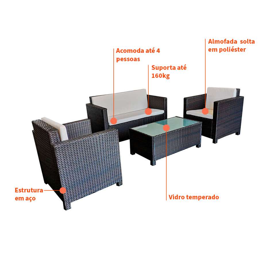 Que Tal O Conjunto Para Área Externa Selina? Dias De Céu Azul E Noites Quentes De Verão Exigem Que Você Separe Um Tempinho De Qualidade Para Passar Ao Ar Livre, Mas Para Isso É Preciso Um Lugar Confortável Para Relaxar E Recepcionar Uns Amigos. O Conjunto Para Área Externa Selina É A Pedida Perfeita Para Essas Ocasiões, Pois Conta Com 3 Poltronas Para Acomodar Seus Convidados E Uma Mesa De Centro Para Apoiar Aquela Limonada Geladinha, O Jogo De Baralho Ou O Livro Da Vez. Além Disso, O Visual Do Espaço Também Vai Ficar Muito Mais Atraente! Preparado Para Momentos De Muito Lazer E Aconchego?