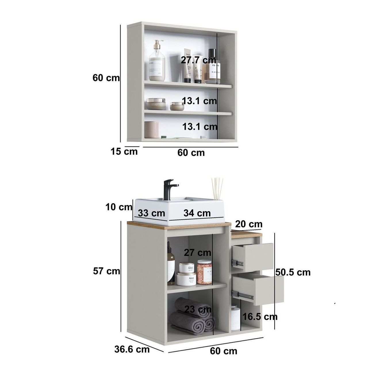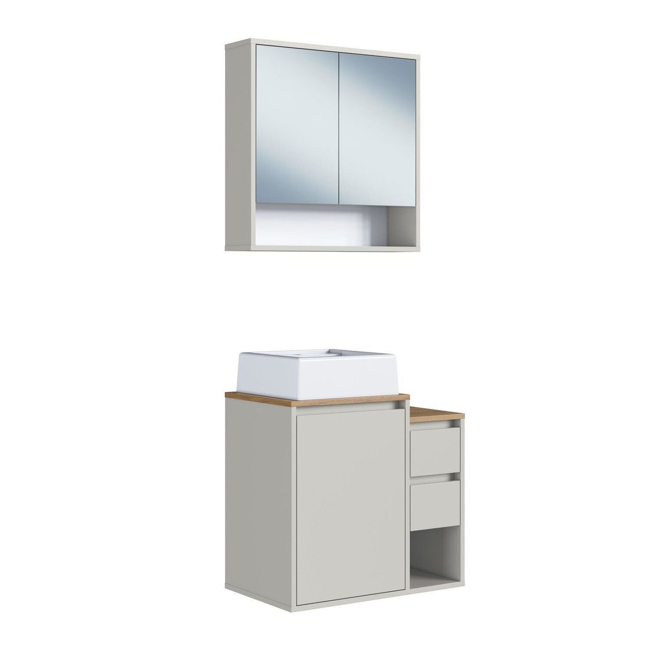 Conjunto Para Banheiro Gabinete Suspenso 60cm Com Cuba Espelheira Bologna Arenas.