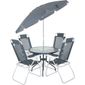 MóveisConjunto de MóveisConjunto Para Jardim Mesa Com Tampo De Vidro E 4 Cadeiras E Ombrellone Noronha Bel